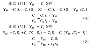 因為C2S1就是S1點的實際流量(也是S1點的理想顯示值);C2S2就是S2點的實際流量(也是S2點的理想顯示值),所以,C2S1就是qs1(即40%的 qmax);C2S2就是qs2(即70%的qmax)。又因為Y1前、Y3前是全量程設置一個流量系數而得到了指示值;Y1后、Y3后是我們修正后的理想顯示值,所以,Y1后、Y3后就分別是標準流量值q1標準1、q3標準1;Y1前、Y3前就分別是未修正前表頭顯示值q1前顯、q3前顯。即:式(4)、(5)就變為