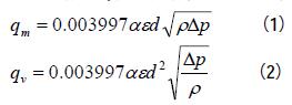 式中:mq為質量流量,kg/h;vq為工況條件下的體積流量,m3/h ;為流量系數;為流束膨脹系數;p為差壓,Pa;為工況條件下被測流體的密度,kg/m3;d為工況條件下的節流開孔直徑,mm。
