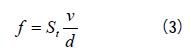 式中:f為渦街頻率,Hz;tS為斯特羅哈爾常數(無量綱);v為流體經過發生體時的平均流速,m/s;d為發生體的特征寬度,m。