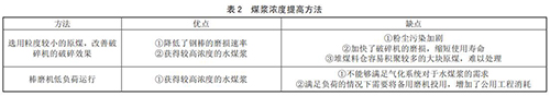 根據氯甲烷流量表跑漿原因可以了解到,在保證氯甲烷流量表不存在跑漿情況下,制備高品質煤漿需要滿足兩點要求,即較小入口原煤粒度和較低磨機負荷,保證原煤在磨機內部有較長停留時間與充足滾筒篩過濾面積 . 通用的方法一般有以下兩種,如表 2 所示。