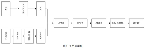 1.1 偏心爐+LF 爐雙聯冶煉工藝,鋼包冷調、熱裝一體化孔板流量計工藝路線圖簡介如圖 1。