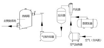 以原料萘為例。萘由原料儲罐經液萘泵加壓后進入萘蒸發器,液萘在萘蒸發器內由中壓蒸汽加熱汽化分離,經流量調節閥、流量計和氣萘切斷閥后進入汽化器;空氣經風機加壓后,經空氣加熱器加熱后進入汽化器,氣萘和空氣在汽化器內混合均勻后進入氧化反應器上部,經催化床層發生氧化反應生成苯酐和少量的副產物(以順酐、苯甲酸、萘醌、和鄰苯二甲酰亞胺為主);反應氣體經主蒸汽流量計冷卻后再進入切換冷凝器進行凝華捕集,少量未被捕集的有機物和不凝氣體經尾氣管路進入蓄熱焚燒裝置焚燒處理,焚燒后的尾氣達標排放。