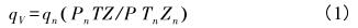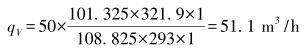 式中,qV、qn分別為工作狀態(tài)和標準狀態(tài)下的體積流量,m3/h;P、Pn分別為工作狀態(tài)和標準狀態(tài)下的絕對壓力,Pa;T、Tn分別為工作狀態(tài)和標準狀態(tài)下的熱力學(xué)溫度,K。
