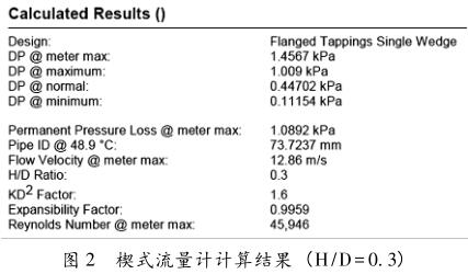 (4)根據(jù)工藝要求及現(xiàn)場安裝環(huán)境選擇耐壓、耐溫等級、防護等級、防爆等級、輸出信號等。3測量熱解氣的渦街流量計的選型設(shè)計熱解氣的組分如表1所述,其工藝參數(shù):操作密度0.63kg/m3,運動粘度2×10-5m2/s,操作溫度48.9℃,操作壓力7.5kPa,管道DN80,*小流量50Nm3/h,正常流量100Nm3/h,*大流量150Nm3/h,儀表測量范圍選擇0~180Nm3/h。因為本裝置為試驗裝置,在裝置運行的過程中,業(yè)主可能會根據(jù)需要適當(dāng)調(diào)整參數(shù),因此選擇量程比寬一些的流量計會有助于調(diào)整后的測量;另外熱解氣作為產(chǎn)品之一,其流量是驗證工藝與關(guān)鍵設(shè)備的工程可行性、優(yōu)化工藝參數(shù)的關(guān)鍵參數(shù)之一,因此使用精度高一些的流量計也是有必要的;熱解氣的組分隨著參數(shù)的調(diào)整也可能會發(fā)生變化,因此基于伯努利方程原理的,如孔板、噴嘴、阿牛巴、德爾塔巴、平衡式等都不能很好的測量,因為這類流量計受流體物性(密度、粘度)和組分變化影響,且*終的熱解氣產(chǎn)品或多或少都有焦油的存在,時間長了可能堵塞流量計。楔式流量計帶自清潔的功能,如果采用法蘭取壓,變送器采用隔膜密封式變送器,其受焦油的影響較小,楔式流量計的計算結(jié)果分別見圖1和圖2。