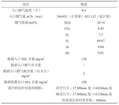 脫硝效率 ≥58.34% ;氨逃逸 ≤2.5mg/m 3 ;SO 2 /SO 3 轉化率 ≤1% ;脫硝系統煙道漏風率<0.1% ;系統壓差 ≤550Pa ;系統連續運行溫度 320~425℃ ;煙氣溫降 ≤3℃ ;20% 的氨水耗量 ≤94.5kg/h。