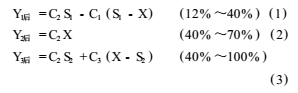 其中:Y1后、Y2后、Y3后分別為修正后*一段、*二段、*三段的流量指示值;X為隨機(jī)定量給出的實(shí)際流量值;S1、S2分別為段間流量的當(dāng)量值,即:未乘系數(shù)時(shí)的當(dāng)量流量。