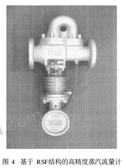 我們研制開(kāi)發(fā)的高精度分流旋翼質(zhì)量流量計(jì)如圖4所示,增加了溫度對(duì)應(yīng)的密度對(duì)質(zhì)量流量的補(bǔ)償功能,增加了流量計(jì)的三段流量系數(shù)修正算法,實(shí)現(xiàn)了理想的蒸汽質(zhì)量流量的計(jì)量,提高了流量計(jì)的計(jì)量精度。使得整個(gè)儀表從原來(lái)的2.5級(jí)~3級(jí)提高到了1級(jí)~1.5級(jí)。