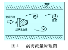 我廠對外供熱部分使用渦街流量計測量蒸汽流量。渦街流量計基于卡門渦街原理,原理如圖4。