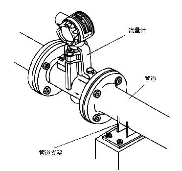 5)減小振動對VSF的影響應該作為VSF現場安裝的一個突出問題來關注。*先在選擇傳感器安裝場所時盡量注意避開振動源。其次采用彈性軟管連接在小口徑中可以考慮。*三,加裝管道支撐物是有效的減振方法,一種管道支撐方法如圖20所示。