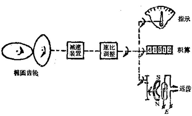 就地顯示將齒輪的轉動通過一系列的減速及調整轉速比機構之后,直接與儀表面板上的指示針相連,并經過機械式計數器進行總量的顯示。