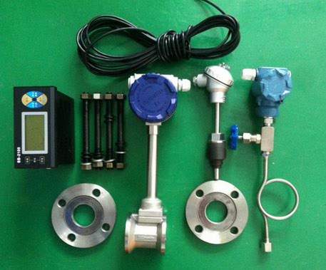 2、溫度補償一體型渦街流量計還帶有溫度傳感器,可以直接測量出飽和蒸汽的溫度并計算出壓力,從而顯示飽和蒸汽的質量流量。