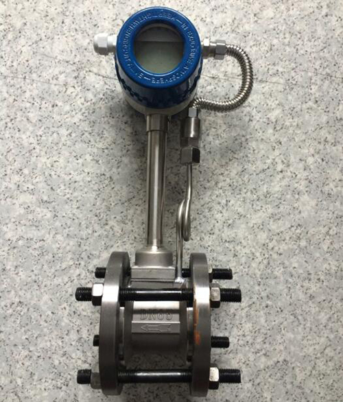 2、溫度補(bǔ)償一體型渦街流量計還帶有溫度傳感器,可以直接測量出飽和蒸汽的溫度并計算出壓力,從而顯示飽和蒸汽的質(zhì)量流量。