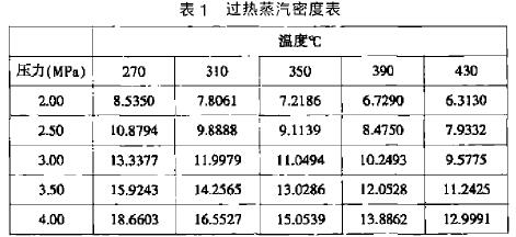揚子石化熱電廠給南京化工園供應過熱蒸汽,為確保蒸汽質量的精確計量,在蒸汽管道上(界區處)順序安裝了渦街流量計、壓力變送器、一體化溫度變送器(圖2),因界區距離雙方的機柜間較遠,一方面避免信號衰減,一方面避免布線困難,故在現場安裝了一臺流量積算儀,作為貿易結算的依據,先將過熱蒸汽密度表(表1)寫入流量積算儀,壓力、溫度信號輸入流量積算儀后,根據蒸汽密度表即可知道蒸汽的密度P,渦街流量計的脈沖信號輸入流量積算儀后,即可知道蒸汽的體積流量qv,從而得出蒸汽的質量流量計qm。當然以上也可以使用溫壓補償渦街流量計配套流量積算儀,就不需要壓力變送器和溫度變送器 也是同樣道理。