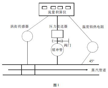 目前常見的用于計量蒸汽的流量計一般有兩種:渦街流量計和差壓式流量計。渦街流量計主要由渦街流量傳感器、流量積算儀、壓力變送器、溫度鉑熱電阻組成。差壓式流量計主要由標準孔板、差壓變送器、流量積算儀、壓力變送器、溫度鉑熱電阻等組成。