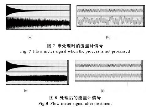 圖 7(b)為展開的視圖。圖 8 為處理后流量計(jì)輸出的傳感器信號和放大器輸出信號。圖 8(a)上部為傳感器輸出的原始信號,下部為放大器輸出信號;