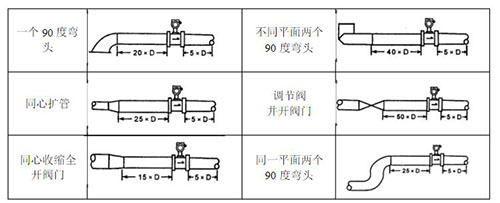 安裝要求:規范對飽和蒸汽流量表的安裝要求比較多,除了對飽和蒸汽流量表的前后直管段的要求如圖,