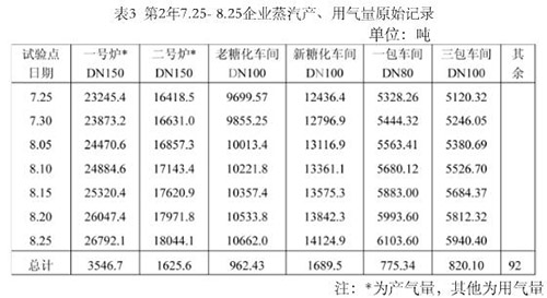 從三年來對乙烯流量表測量飽和蒸汽的試驗數據統計,由圖和表可看出對飽和蒸汽的計量效果。